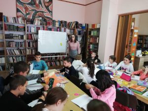 27. novembra 2019.  družili smo se sa učenicima četvrtog razreda. U pratnji svoje učiteljice Olivere Raut, oni su došli da razgovaramo o narodnim epskim pesmama, a obradili smo pesmu o čuvenom hajduku – Starom Vujadinu. Kroz igru, druženje i timski rad deca su usvojila nova znanja, a vreme nam je proletelo.