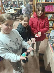 Пуна библиотека, весела атмосфера и задовољна дечица, која су израдила ове прелепе магнете и украсне тегле.